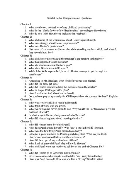 Read Scarlet Letter Comprehension Check Questions Answers Kindle Editon